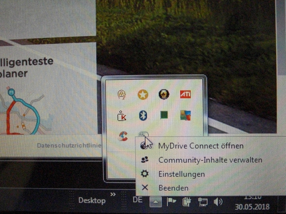 - Jetzt erscheint auch das Icon von TomTom. Auf dieses klickt man mit der rechten Mousetaste.