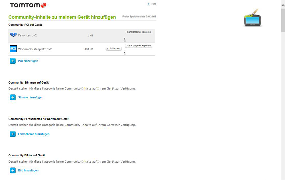 - Eine Downloadseite für die POI die ihr installieren wollt im *.ov2-Format (ich habe POIbase mit Anmeldung verwendet).