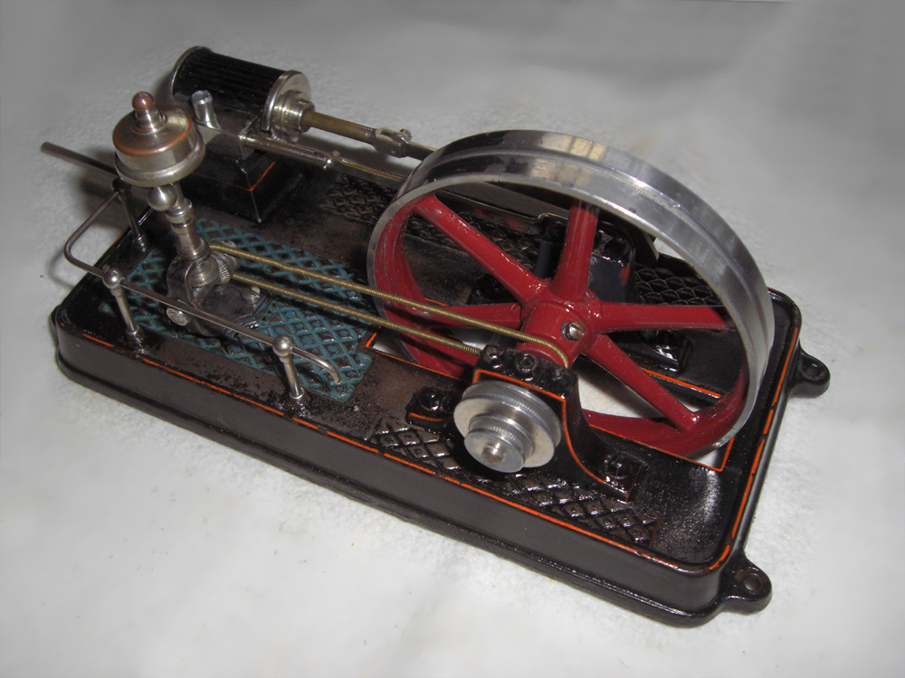 Mit dem großen 95mm Schwungrad und dem schweren gusseisernen Fundament, ist es für eine Modelldampfmaschine schon eine echte Hausnummer.